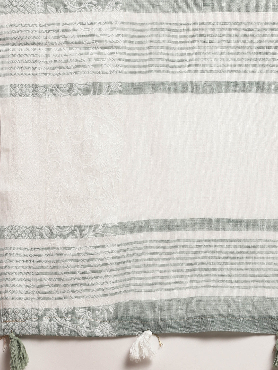 Sutriti Women Teal Green & Silver-Toned Woven Design Linen Blend Saree